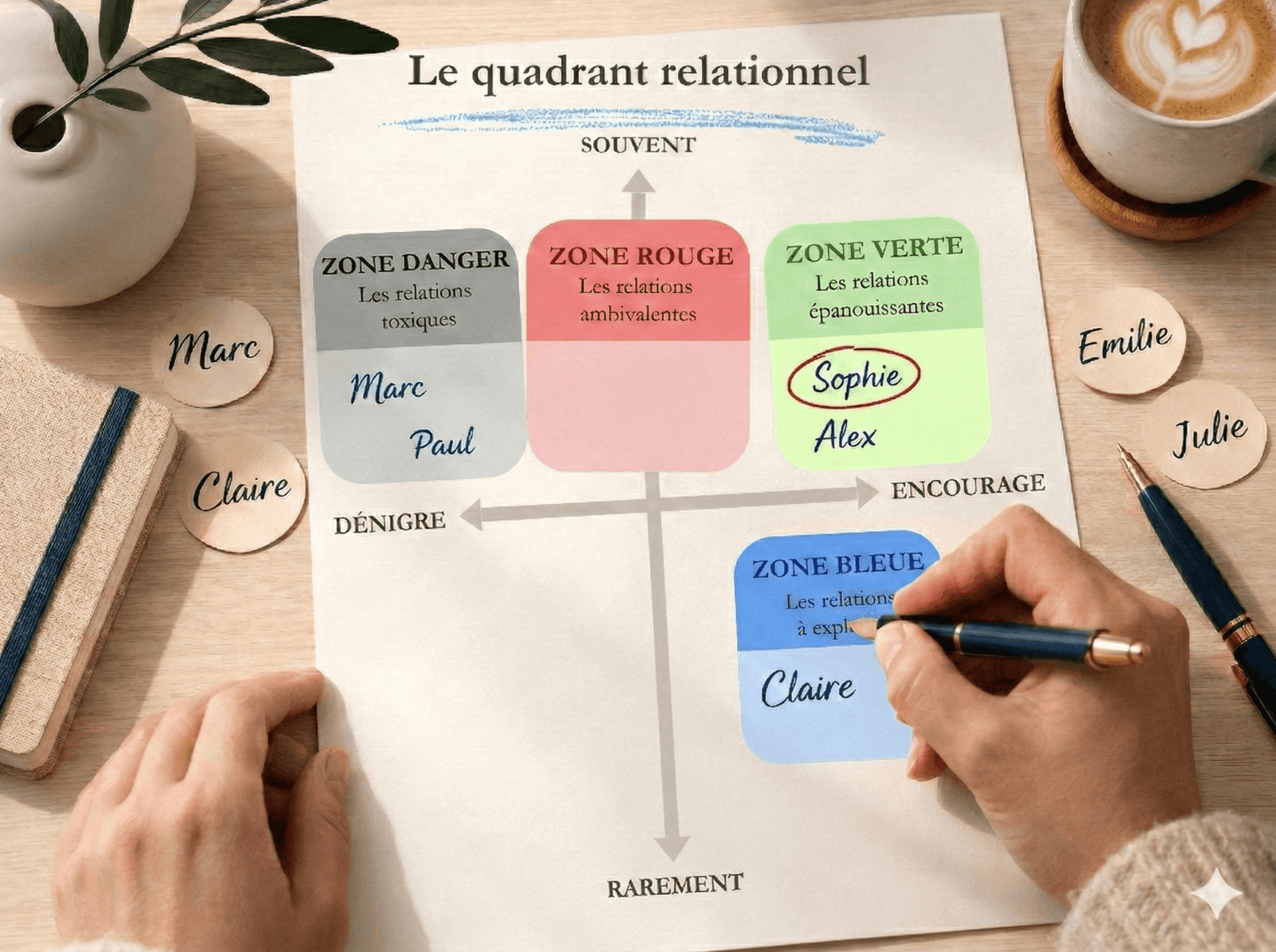 Dans mon article complet sur l’amitié toxique et le coût caché des relations ambivalentes vous découvrirez le Quadrant relationnel : un outil pour clarifier vos liens et décider où investir votre énergie.